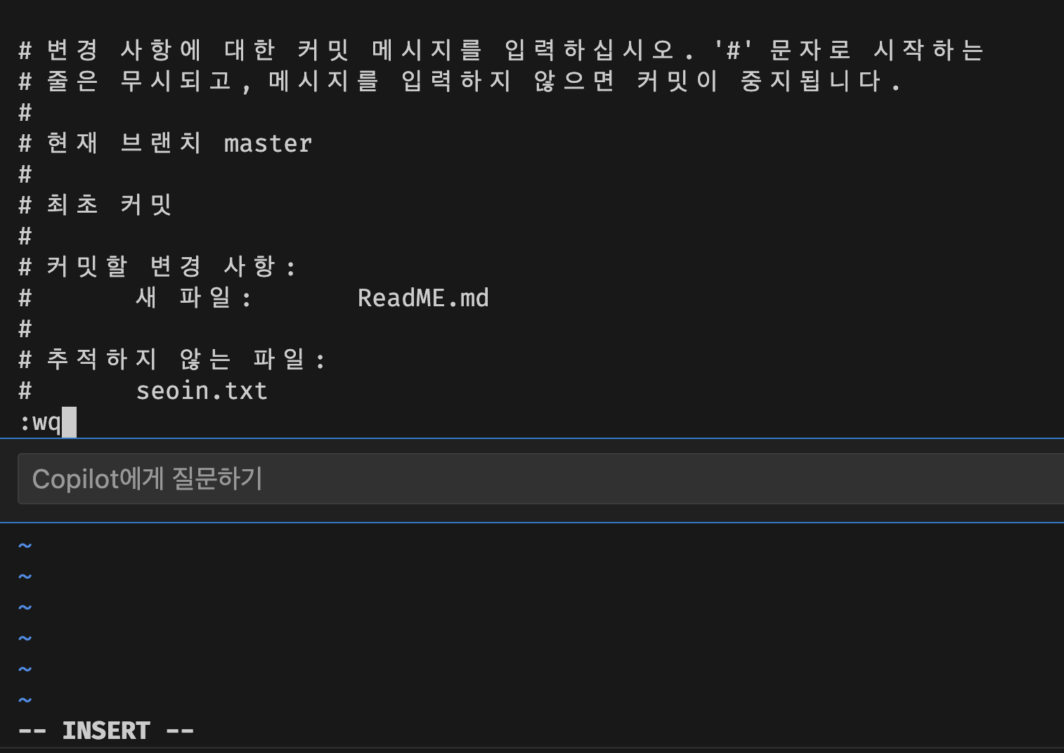 * VSCode의 Terminal 안에서 작성합니다