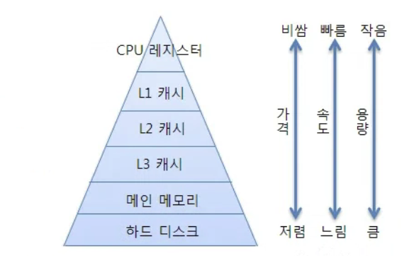 | 계층 | 속도 | 용량 | 가격 | 휘발성 |