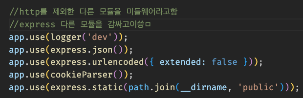 json을 쓸 수 있는 것도 미들웨어로 먹어서 그런거임