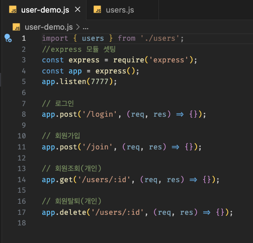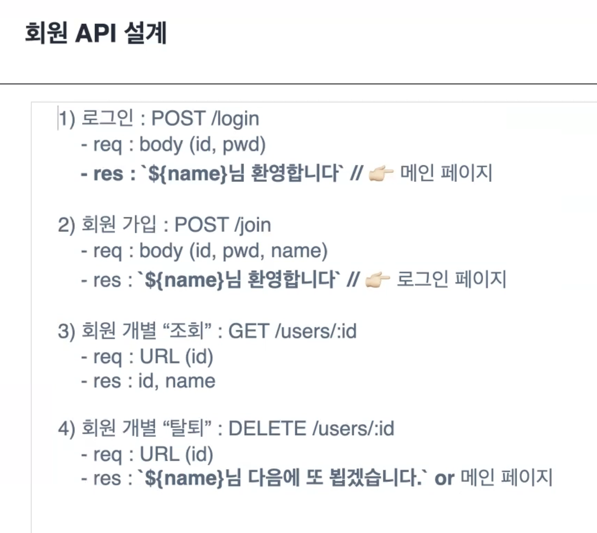 페이지마다 필요한 api ㅡ를 적어두고 필요한 req,res를 적어보아요