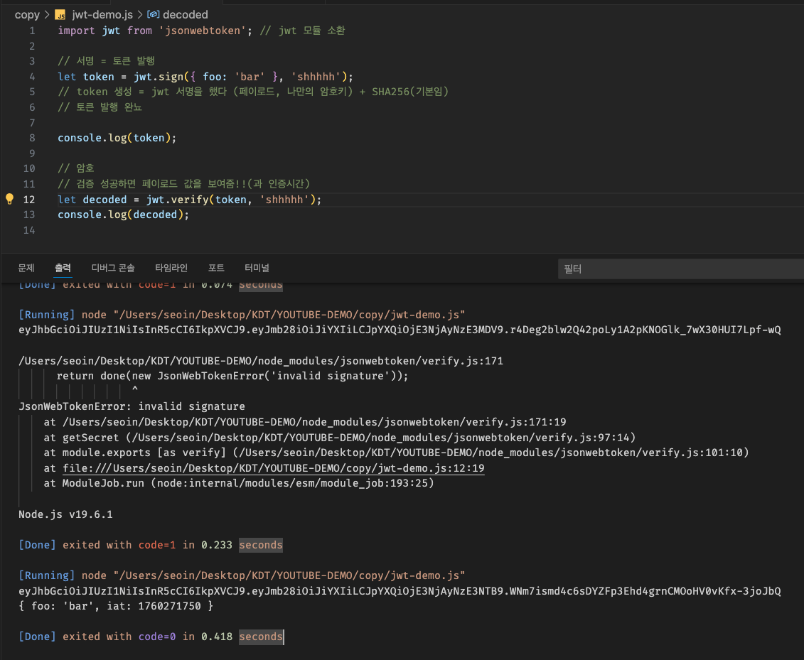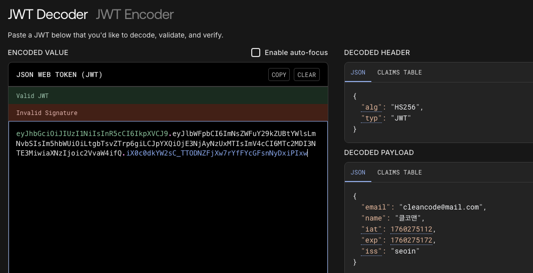 JsonWebTokenError로 invalid signature 오류가 뜸