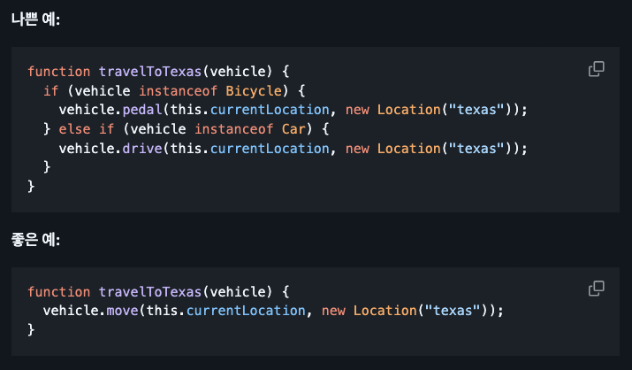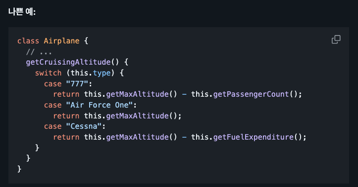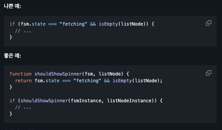 - 함수를 이용하여 조건문을 캡슐화하세요. 유지보수하기 수월해집니다!