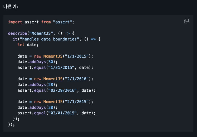 하나의 테스트는 하나의 목표를 가지게 하세요