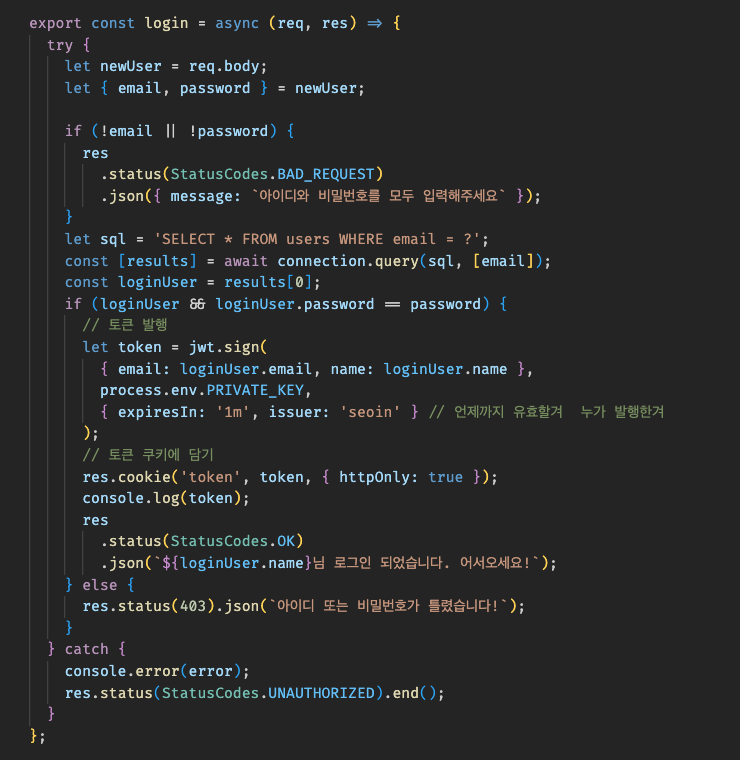 2. 로그인 시, 이메일&비밀번호(날 것) salt값 꺼내서 비밀번호 암호화 해보고=> db 비밀번호랑 비교