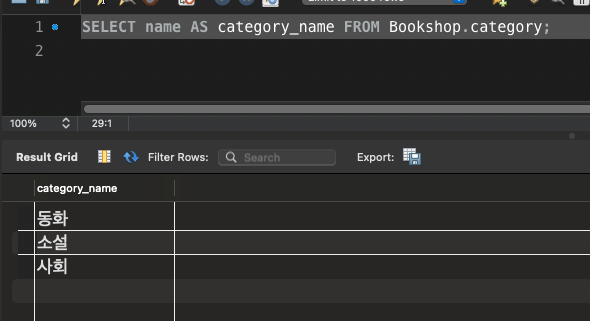 별칭 쓰는 법 = AS 로 씀