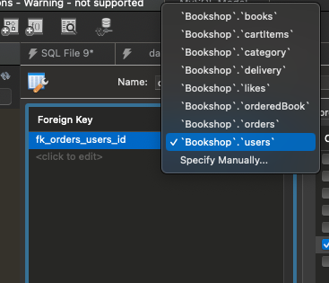 Error Code: 1452. Cannot add or update a child row: a foreign key constraint fails (`Bookshop`.`orderedBook`, CONSTRAINT `fk_orderedBook_orders_id` FOREIGN KEY (`order_id`) REFERENCES `orders` (`id`) ON DELETE NO ACTION ON UPDATE NO ACTION)