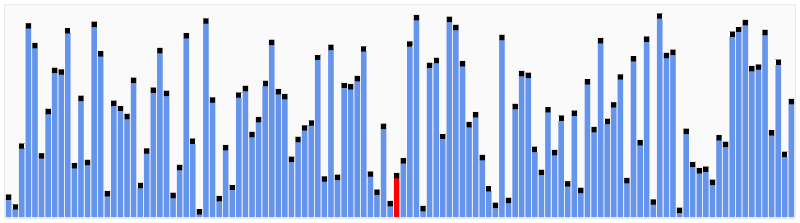 특징 한 줄 요약: 평균 매우 빠르고 메모리 거의 안 씀(제자리), 하지만 “최악”이 있을 수 있고 안정 정렬이 아님(같은 값의 순서가 바뀔 수 있음).
