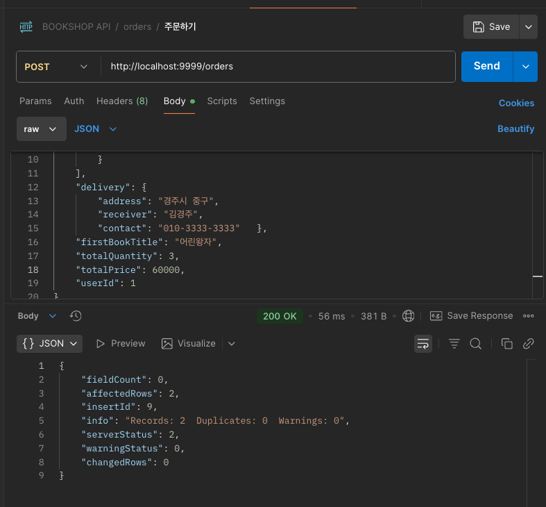 반환 값으로 질의 수행한 결과문을 받을 수 있다.