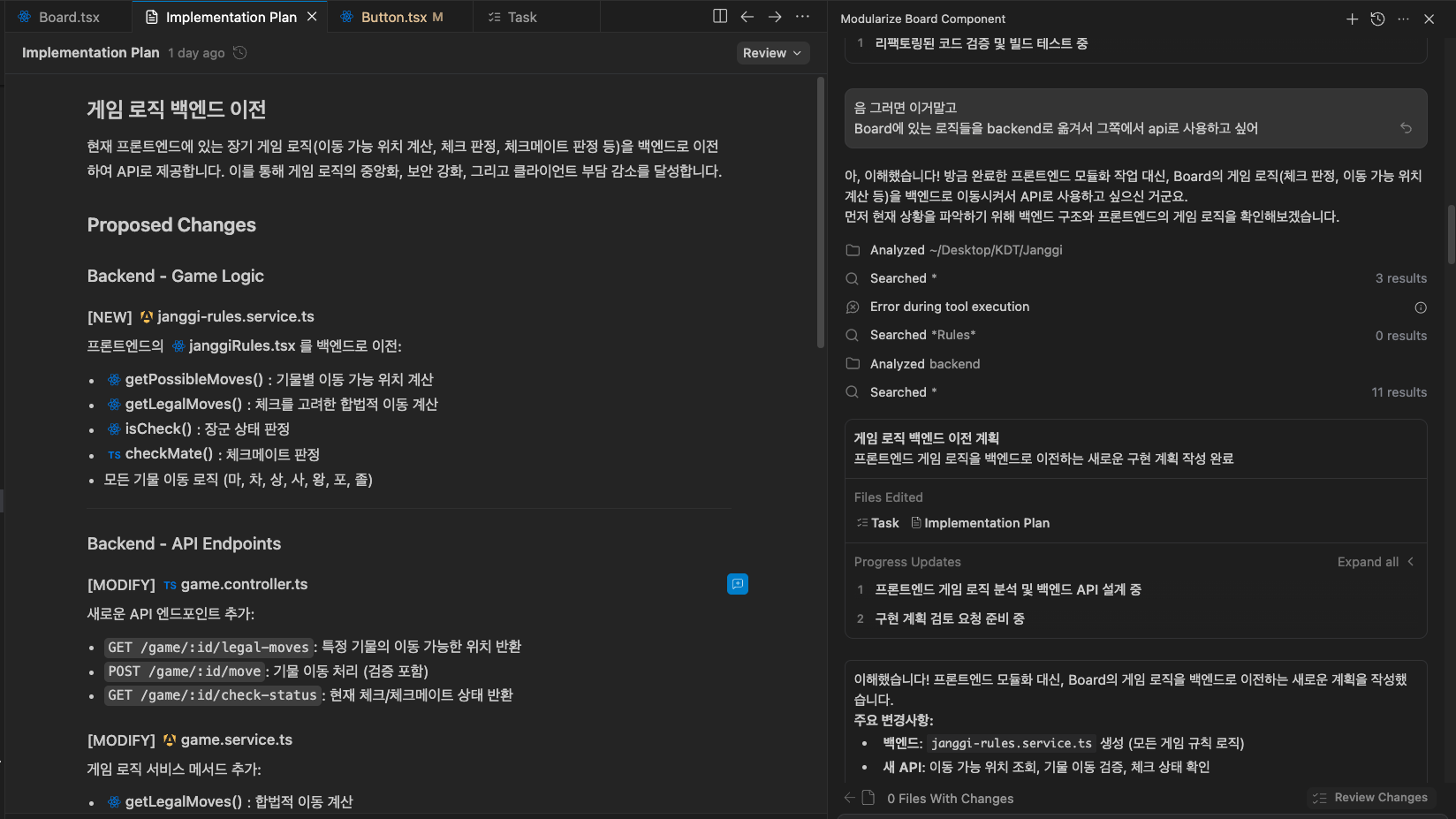 Implementation Plan 문서를 제공한 뒤,